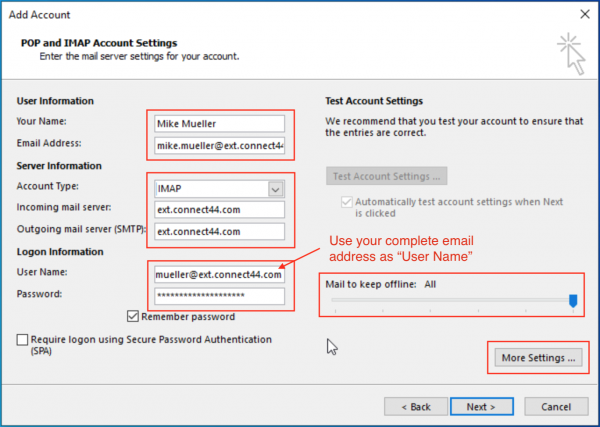 Setup C44 Email in Outlook 2016